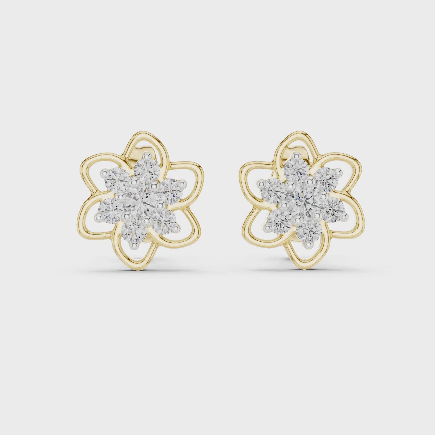 Capture the brilliance of nature with the Aster Bloom Diamond Studs. These exquisite studs feature a central cluster of dazzling, ethically sourced lab-grown diamonds, framed by a delicate open-gold petal setting. The result is a striking floral design that offers maximum sparkle without the weight. A perfect symbol of growth and lasting beauty, crafted with a commitment to the planet.