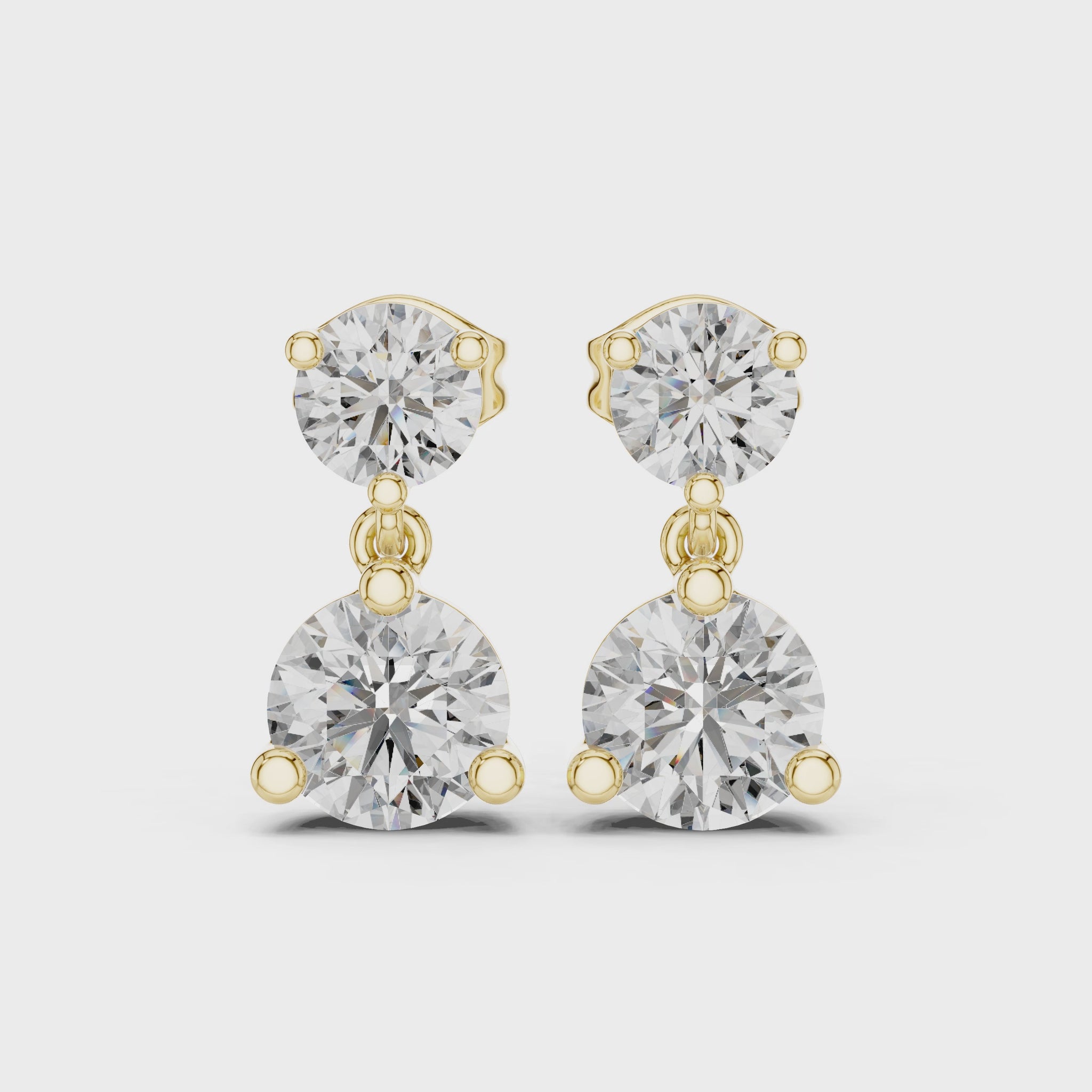 Set in lustrous Yellow Gold, Rose Gold and White Gold (of your choice), each diamond is secured by a classic four-prong setting, allowing maximum light to enter and enhance the stone's fire. The design features a smaller diamond at the earlobe connected by a sleek link to a larger, captivating diamond, creating a sophisticated dangle that catches the light with every turn.