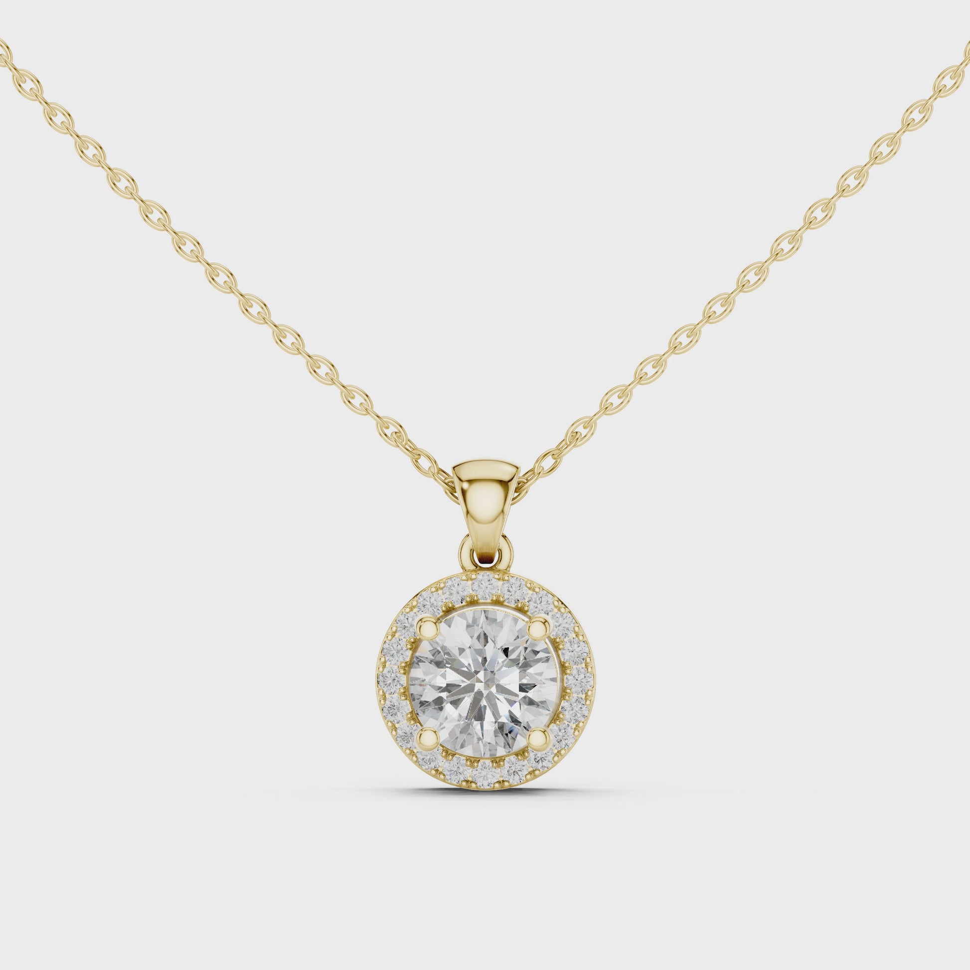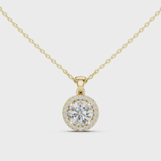 Introducing the Petite Halo Solitaire Diamond Pendant, a timeless piece that captures and reflects light from every angle. This exquisite pendant is designed for those who appreciate classic elegance with a modern, ethical sensibility.